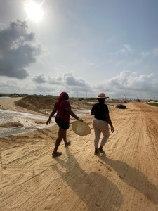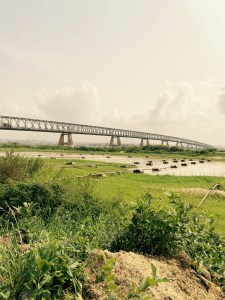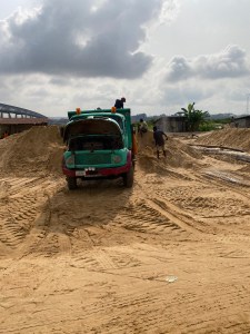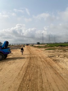 In front of us spread a wide, red sandy road untarred, uneven, but full of life.Every step I took made soft red dust rise behind my slippers.Dumper trucks rumbled past, their heavy tires sinking into the sand, carrying yesterday’s dredging work to new destinations.I kept walking…the sound of engines grew louder…the air became moist with river breeze…Then suddenly ,the river opened before me.